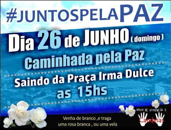 A violência desenfreada no Brasil que atinge também hoje municípios pequenos, e principalmente adolescentes e jovens, motivou grupos de pessoas ativas de Candeias a realizar uma Caminhada pela Paz, no próximo domingo, dia 26, com concentração às 15h, na Praça Irmã Dulce, uma das mais importantes da cidade.